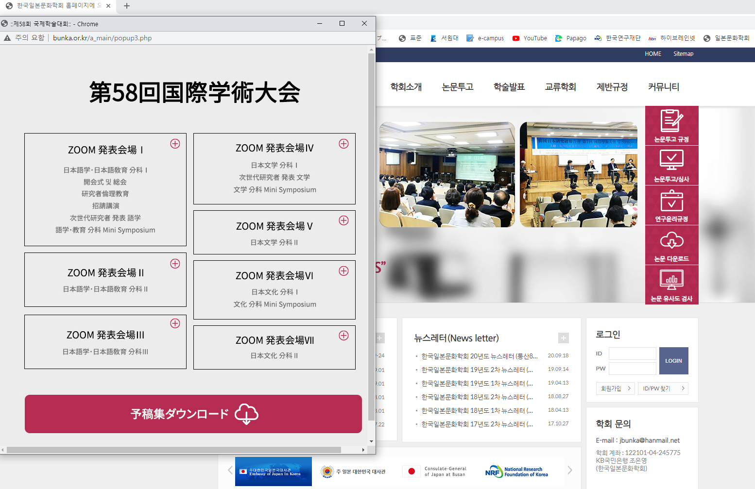 제58회 국제학술대회 안내 팝업창 한국일본문화학회 2020-09-25
